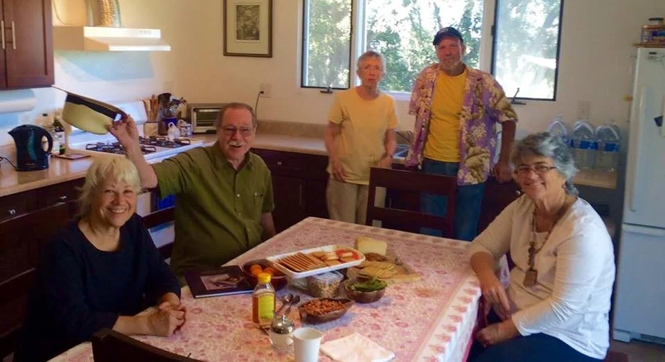 AT THE KITCHEN TABLE (left to right) Ginger Glasky, Charles Mills, Phil and Ina from Santa Barbara, and Linda Mills. (Photo: Buzz Glasky, 2014)